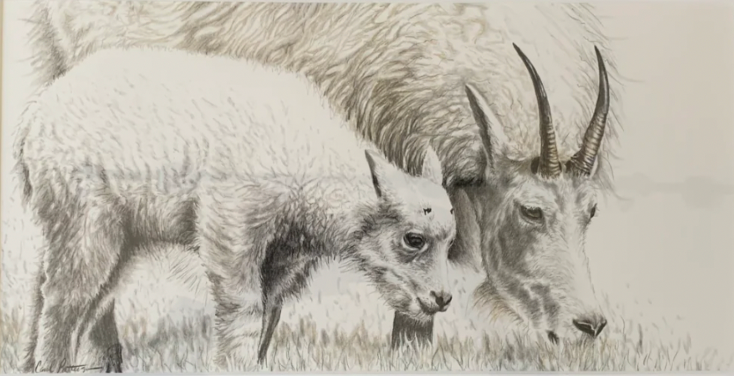 CarolP-Original Graphite- "Mtn Goat Ewe w/ Kid" 14x22