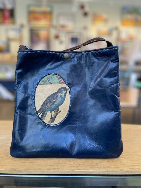 Traci began making large totes in 2008 from reused textiles such as coffee bags and re-purposed upholstery fabrics. In recent years she has transitioned back to using primarily leather, which was her original skill and love. She loves the way leather looks and feels; its durability is unequaled by any other natural substance.