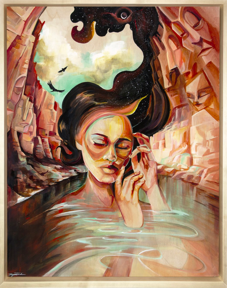 Kelsey's dreamlike imagery is inspired by her personal experiences in remote landscapes. She utilizes a vibrant palette of acrylic on wood to create her own brand of modern expressionism.